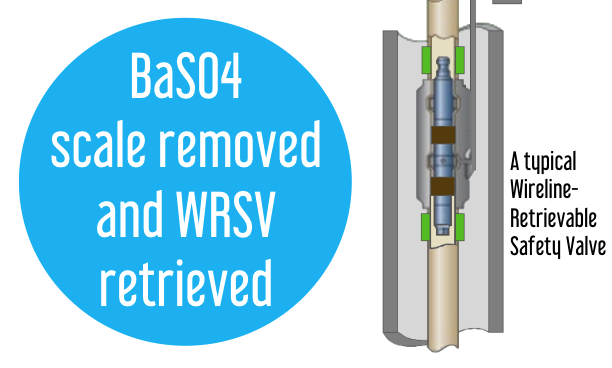 After the BLUESPARK® and chemical treatments, the WRSV was successfully retrieved from the wellbore.