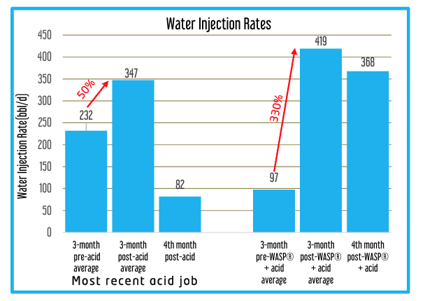 The well saw an immediate increase in injection rates and a decrease in injection pressure.