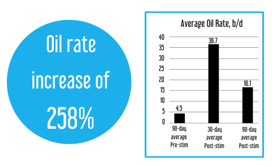Sustained production over 90 days averaged 16.1 b/d of oil (258% increase).